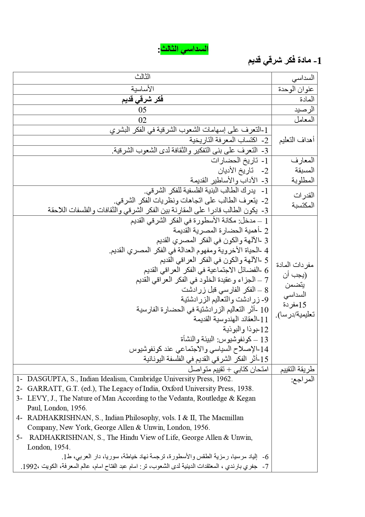 المعارف المسبقة المطلوبة